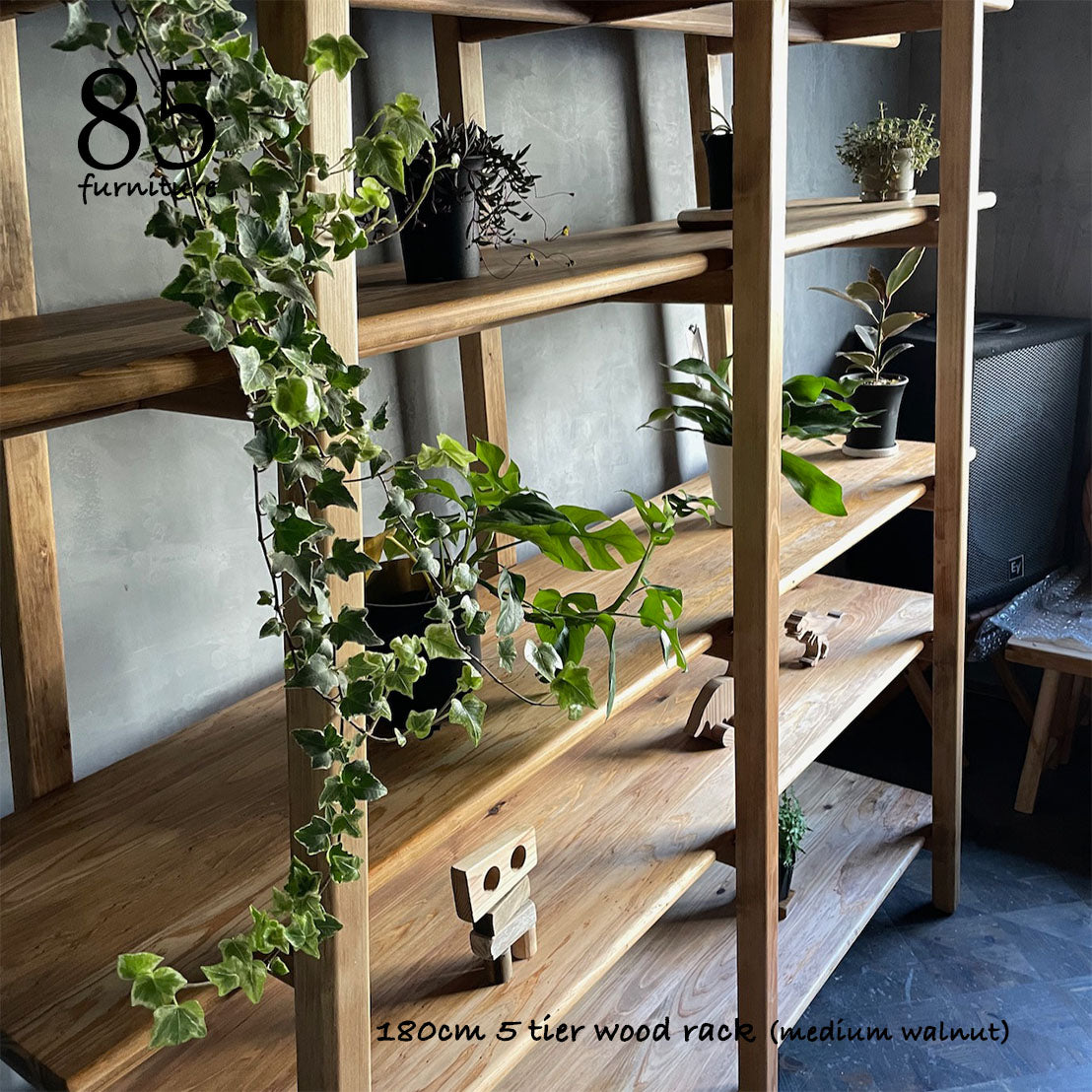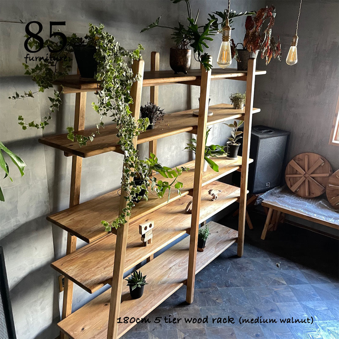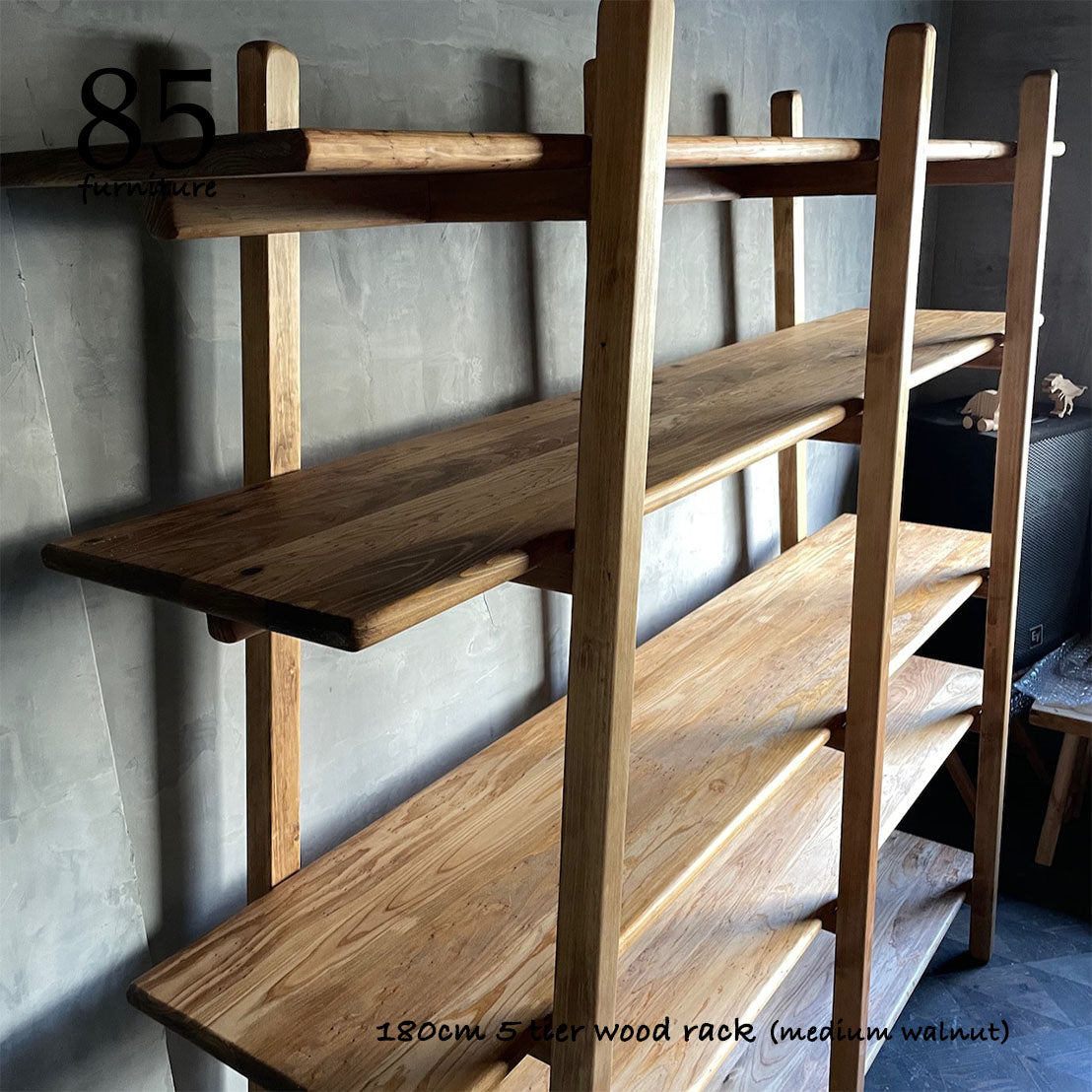 脚部も含め、すべてを無垢材で製作した5段オープンラックです。