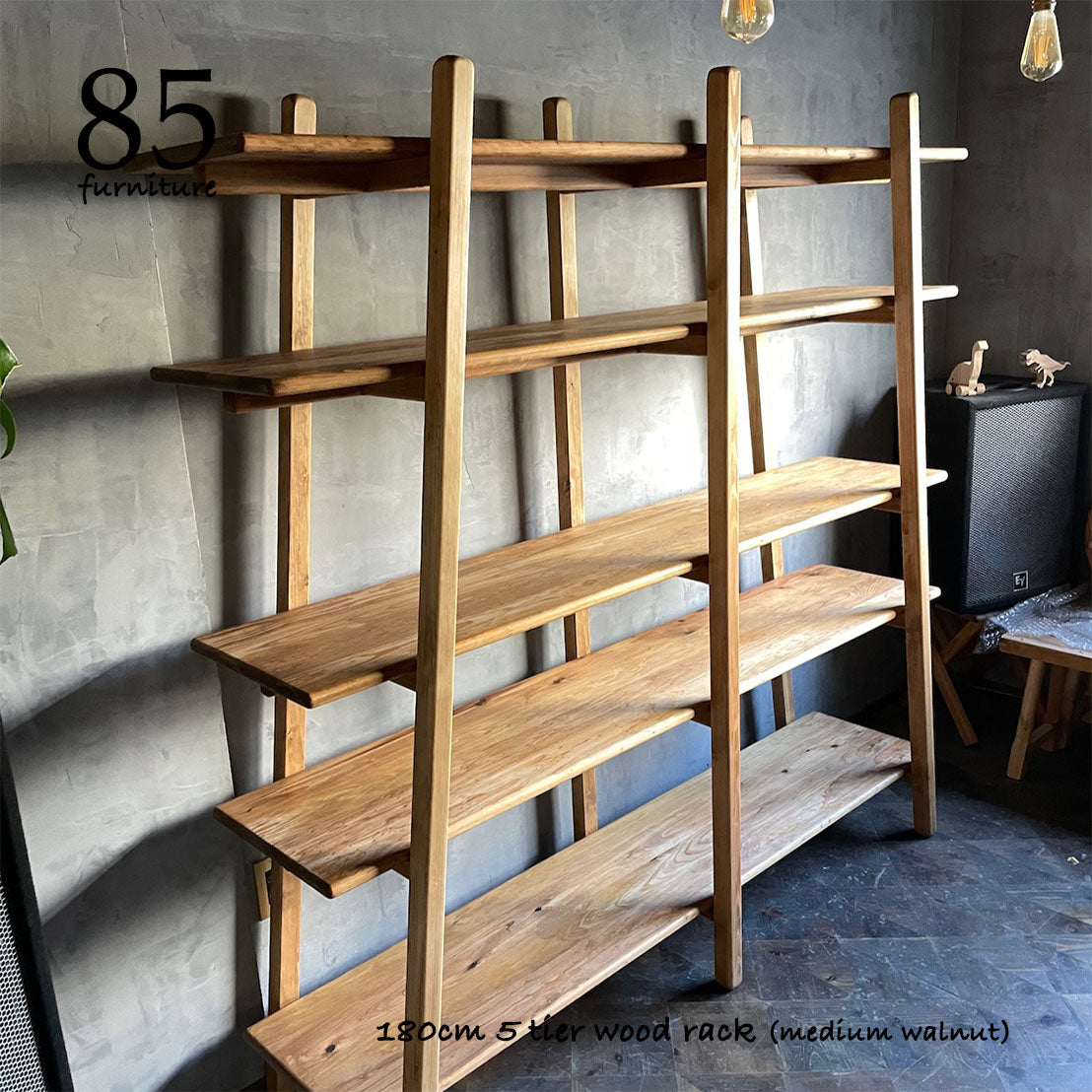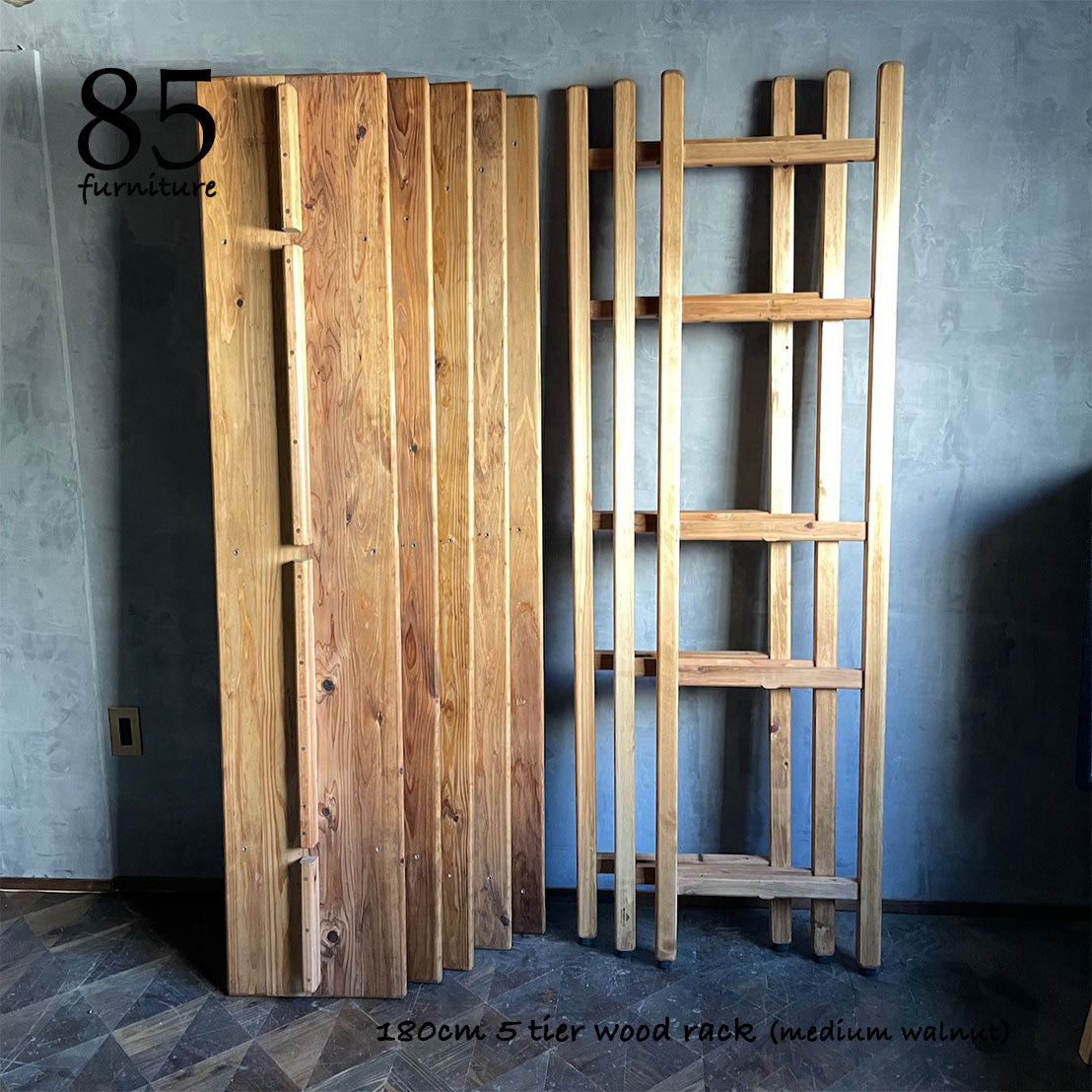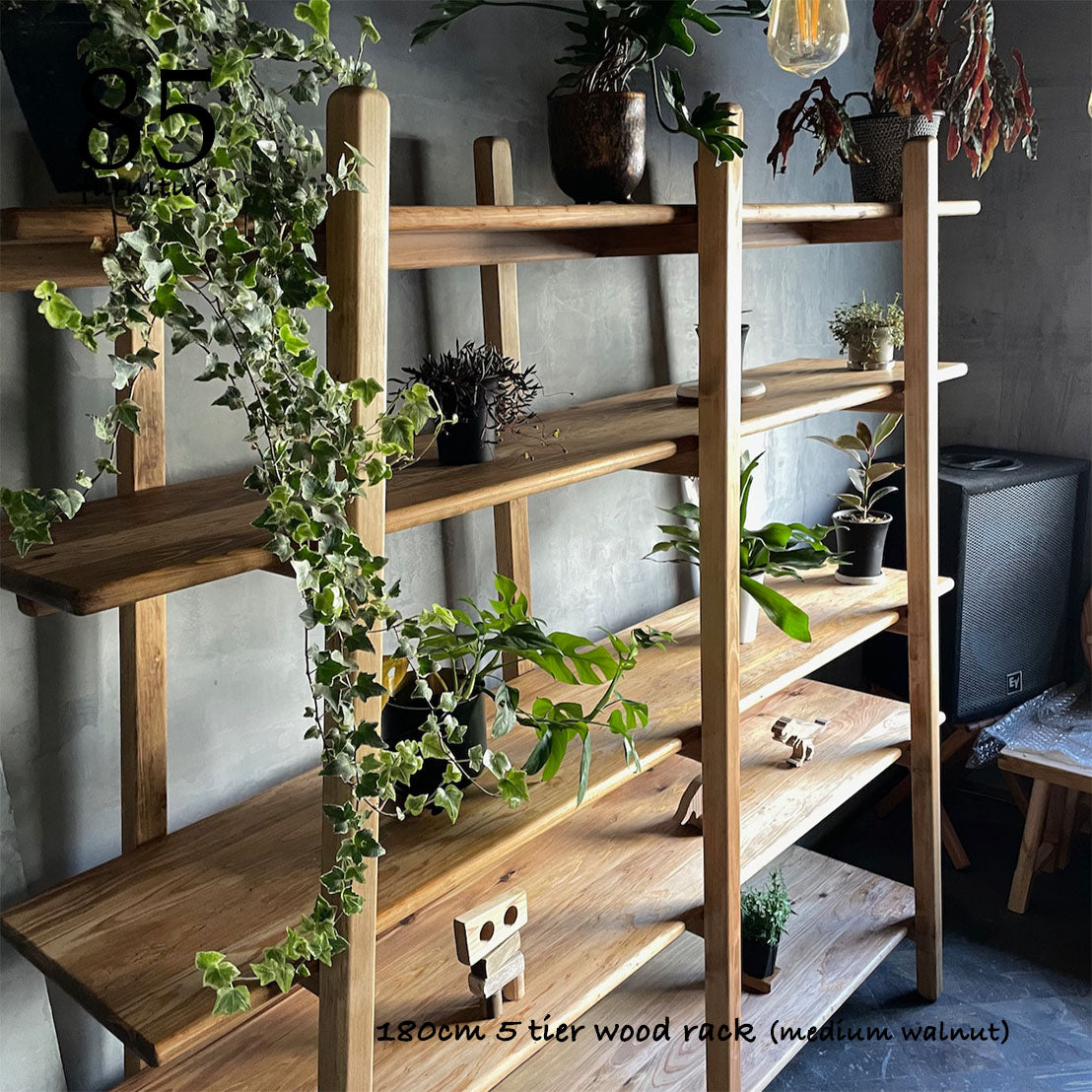 脚部も含め、すべてを無垢材で製作した5段オープンラックです。
