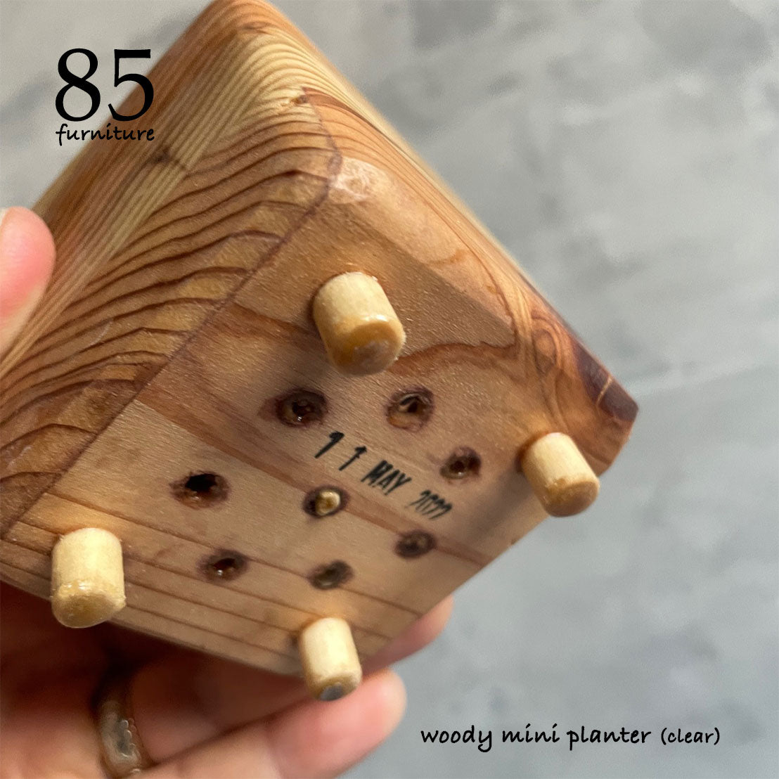 脚付き木製植木鉢です。